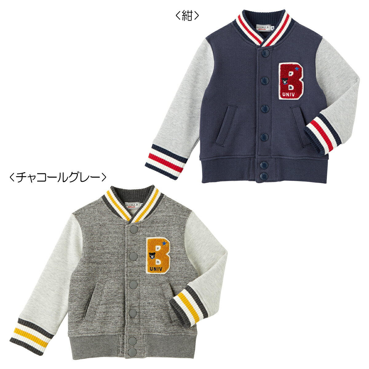 【アウトレット】ミキハウス ダブルビー mikihouse スタジャン風裏毛パイルジャンパー(80cm・90cm) ベビー服 キッズ 子供服 赤ちゃん 子供 こども 男の子 あたたかい