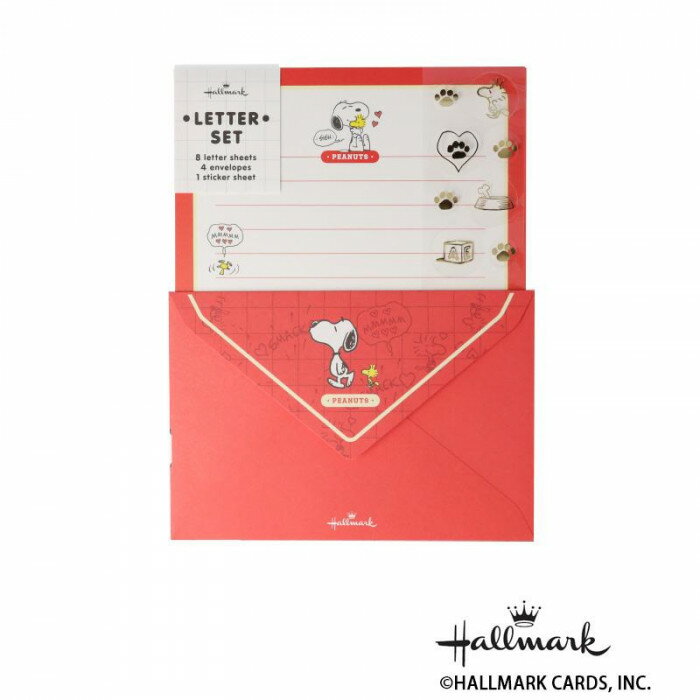 あると便利 日用品 Hallmark ホールマーク スヌーピー 便箋封筒セット シール・レッドWS 6セット 771652