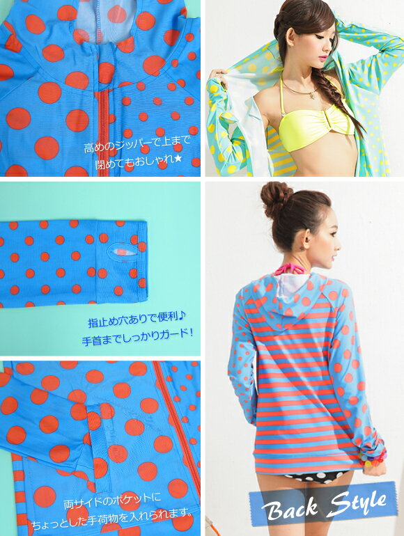 大小ドットとボーダーの切り替えがPOPなラッシュガード♪