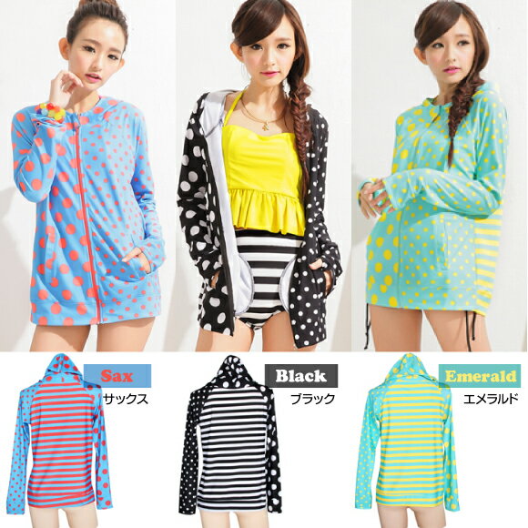 長袖パーカータイプラッシュガード (swak-r1412) カラー: ・エメラルド・ブラック・サックス サイズ: S M L サイズ実寸: 7S 9M 11L バスト 79-83 83-85 85-88 ウエスト 59-63 64-70 69-77 ヒップ 82-90 87-95 92-100 着丈:S62cm M63cm L64cm 生地の透け感: なし セット内容: ラッシュガード(パーカータイプ) 素材: ナイロン82%・ポリウレタン18% 生産国: 中国製(企画・デザインは日本)