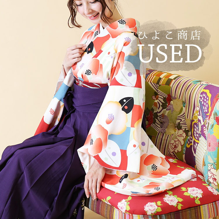 【リサイクル着物セット】適応身長153〜163cm/大人用袴 3点セット(着物/袴/襦袢) リサイクル着物 アンティーク着物 中古着物 古着 袴 卒業式 USED 中古 ヴィンテージ サステナブル エコ